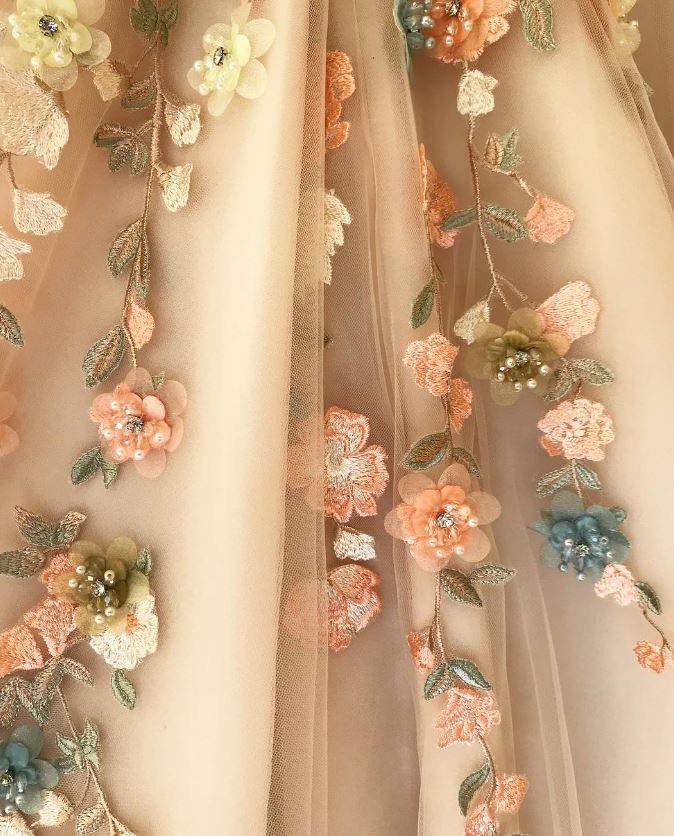 Embroidered Corset Puffy Sleeve Mesh Tulle Ball Gown Thigh Split Bridesmaid Dress